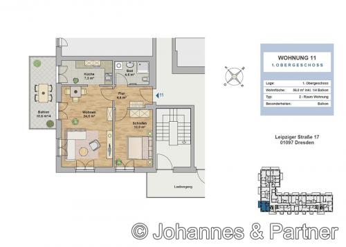 Das Haus bietet für Singles 1-bis 2-Raum-Wohnungen und für Familien 3-bis 5- Raum -Wohnungen mit Größen von 26-163 m² mit durchdachten Grundrissen und moderner Ausstattung wie: