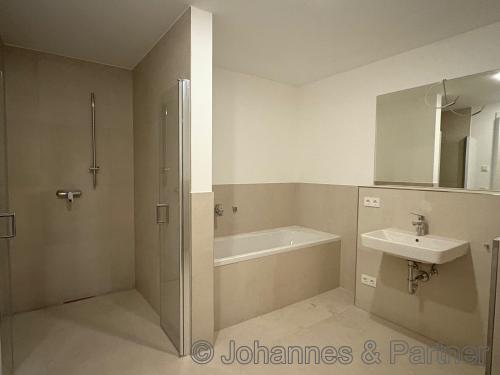 * modern und hell geflieste Bäder mit ebenerdigen Duschen und/oder Badewanne
