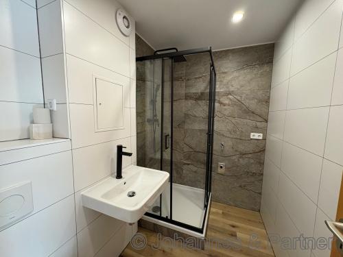 * Bad mit großer Dusche und Waschmaschinenanschluss