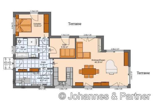 * 2 Terrassen á ca. 15 m² mit Zugang zum Garten