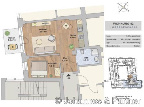 Im Herzen von Striesen-Ost, einer der gefragtesten Wohngegenden von Dresden, entstehen in drei Bauabschnitten im denkmalgeschützten Gebäude der Historischen Tabakfabrik verschiedene 1- bis 5- Raum- Wohnungen. Die Außenanlagen werden zeitgemäß und freundlich angelegt, mit Spielplatz und Sitzgelegenheiten und fügen sich harmonisch in das Gesamtbild ein. Angaben aus dem Energieausweis: Baujahr:1912/ 2019 Objektzustand: neuwertig Die Wohnungen gleichen im Wesentlichen dem Grundriss der hier abgebildeten Ansicht! Der Grundriss ist nicht maßstabsgetreu, die Raumgrößen sind beispielhaft u. können geringfügig variieren. Die Wohnung kann spiegelverkehrt sein. Die abgebildete Möblierung stellt lediglich einen Vorschlag dar und ist nicht Leistungsbestandteil.