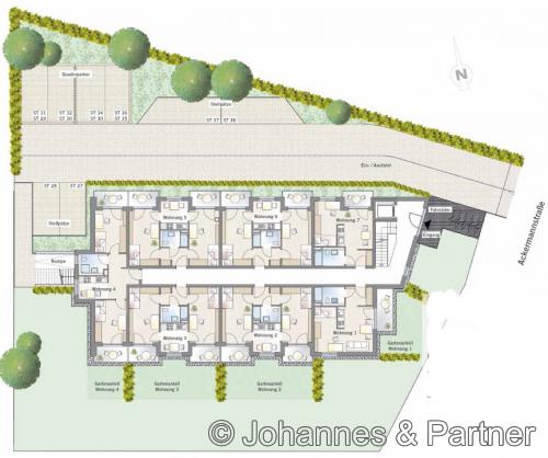 Die Erdgeschoss-Wohnungen haben zusätzliche einen kleinen Gartenanteil.