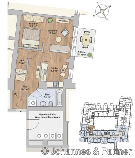 Im Herzen von Striesen-Ost, einer der gefragtesten Wohngegenden von Dresden, befindet sich im denkmalgeschützten Gebäude der Historischen Tabakfabrik diese schöne 2-Raum- Wohnung mit ideal durchdachtem Grundriss, auch geeignet für Wohngemeinschaften. Die Außenanlagen sind zeitgemäß und freundlich angelegt, mit Spielplatz und Sitzgelegenheiten und fügen sich harmonisch in das Gesamtbild ein. Angaben aus dem Energieausweis: Baujahr:1912/ 2020 Objektzustand: Erstbezug Die Wohnungen gleichen im Wesentlichen dem Grundriss der hier abgebildeten Ansicht! Der Grundriss ist nicht maßstabsgetreu, die Raumgrößen sind beispielhaft u. können geringfügig variieren. Die Wohnung kann spiegelverkehrt sein. Die abgebildete Möblierung stellt lediglich einen Vorschlag dar und ist nicht Leistungsbestandteil.