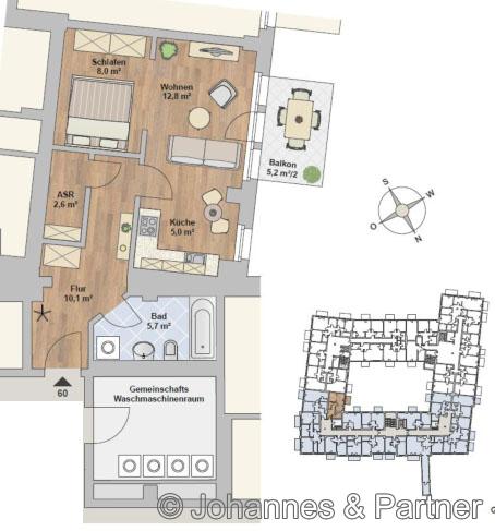 Im Herzen von Striesen-Ost, einer der gefragtesten Wohngegenden von Dresden, befindet sich im denkmalgeschützten Gebäude der Historischen Tabakfabrik diese 2-Zimmer- Wohnung. Die Außenanlagen sind zeitgemäß und freundlich angelegt, mit Spielplatz und Sitzgelegenheiten und fügen sich harmonisch in das Gesamtbild ein. Angaben aus dem Energieausweis: Baujahr:1912/ 2020 Objektzustand: neuwertig Die Wohnungen gleichen im Wesentlichen dem Grundriss der hier abgebildeten Ansicht! Der Grundriss ist nicht maßstabsgetreu, die Raumgrößen sind beispielhaft u. können geringfügig variieren. Die Wohnung kann spiegelverkehrt sein. Die abgebildete Möblierung stellt lediglich einen Vorschlag dar und ist nicht Leistungsbestandteil.