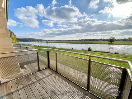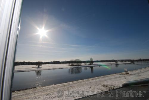 Rarität in absoluter Bestlage an der Elbe! exklusive 3-Zimmer-Wohnung mit hochwertiger Ausstattung in unwiederbringlicher Lage mit herrlichem Blick auf die Elbe und hauseigenem Park zur Nutzung. Alle Wohnungen beginnen elbseitig in etwa 7 Metern Höhe und sind dadurch nachweislich hochwassersicher und das Erdgeschoss ist elbseitig Obergeschoss! Die 3-Zimmer-Wohnung ist ausgestattet mit: * großen Fensterfronten im Wohnzimmer